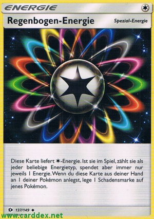 Diese Karte liefert -Energie. Ist sie im Spiel, zählt sie als jeder beliebige Energietyp, spendet aber immer nur jeweils 1 Energie. Wenn du diese Karte aus deiner Hand an 1 deiner Pokémon anlegst, lege 1 Schadensmarke auf jenes Pokémon.