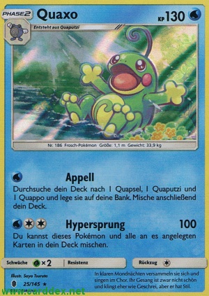 Kosten: Durchsuche dein Deck nach 1 Quapsel, 1 Quaputzi und 1 Quappo und lege sie auf deine Bank. Mische anschließend dein Deck.   Schaden: