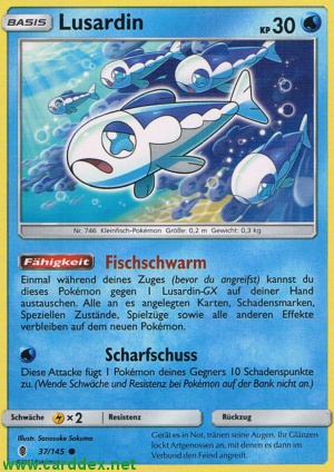 Einmal während deines Zuges (bevor du angreifst) kannst du dieses Pokémon gegen 1 Lusardin-GX auf deiner Hand austauschen. Alle an es angelegten Karten, Schadensmarken, Speziellen Zustände, Spielzüge sowie alle anderen Effekte verbleiben auf dem neuen Pokémon.