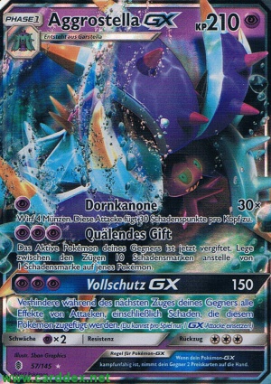 Kosten: Verhindere während des nächsten Zuges deines Gegners alle Effekte von Attacken, einschließlich Schaden, die diesem Pokémon zugefügt werden. (Du kannst pro Spiel nur 1 GX-Attacke einsetzen.)   Schaden: