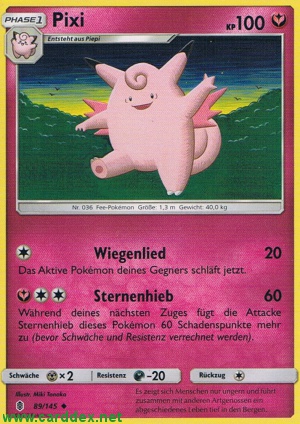 Kosten: Während deines nächsten Zuges fügt die Attacke Sternenhieb dieses Pokémon 60 Schadenspunkte mehr zu (bevor Schwäche und Resistenz verrechnet werden).   Schaden: