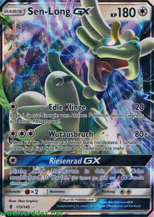 Kosten: Mische deine Handkarten in dein Deck. Ziehe anschließend 10 Karten. (Du kannst pro Spiel nur 1 GX-Attacke einsetzen.)  Schaden: