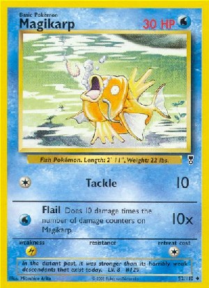 Kosten: Fügt 10 Schadenspunkte mal der Anzahl der auf Karpador abgelegten Schadensmarken zu.  Schaden: