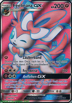 Kosten: Gib deinem Gegner 2 Pokémon von seiner Bank und alle an sie angelegten Karten auf seine Hand. (Du kannst pro Spiel nur 1 GX-Attacke einsetzen.)   Schaden: