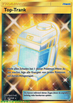 Heile allen Schaden bei 1 deiner Pokémon. Wenn du das machst, lege alle an jenes Pokémon angelegte Energien auf deinen Ablagestapel.