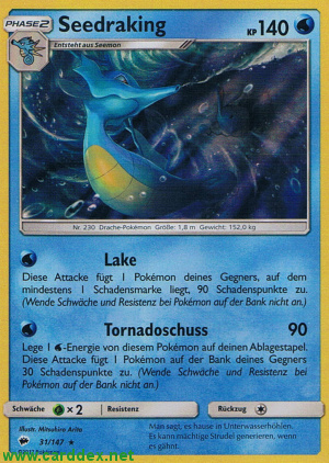 Lege 1 -Energie von diesem Pokémon auf deinen Ablagestapel. Diese Attacke fügt 1 Pokémon deines Gegners 30 Schadenspunkte zu. (Wende Schwäche und Resistenz bei Pokémon auf der Bank nicht an.)