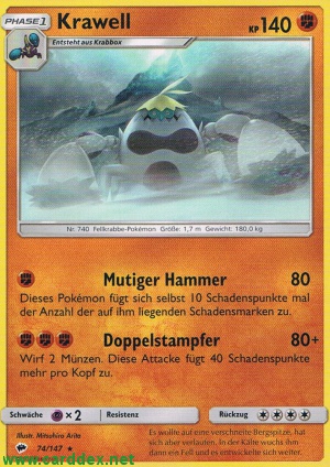 Kosten: Dieses Pokémon fügt sich selbst 10 Schadenspunkte mal der Anzahl der auf ihm liegenden Schadensmarken zu.   Schaden: