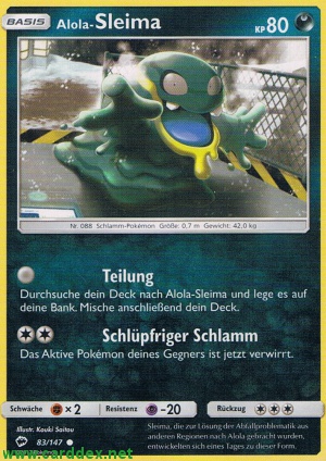 Kosten: Durchsuche dein Deck nach Alola-Sleima und lege es auf deine Bank. Mische anschließend dein Deck.   Schaden: