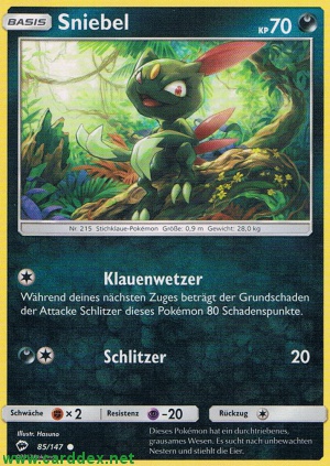 Kosten: Während deines nächsten Zuges beträgt der Grundschaden der Attacke Schlitzer dieses Pokémon 80 Schadenspunkte.   Schaden: