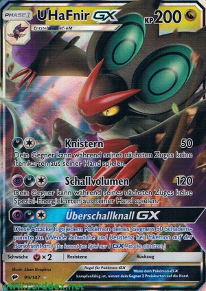 Diese Attacke fügt jedem Pokémon deines Gegners 50 Schadenspunkte zu. (Wende Schwäche und Resistenz bei Pokémon auf der Bank nicht an.) (Du kannst pro Spiel nur 1 GX-Attacke einsetzen.)