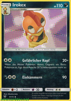 Kosten: Wenn das Aktive Pokémon des Gegners ein Basis-Pokémon ist, fügt diese Attacke 50 Schadenspunkte mehr zu.  Schaden: