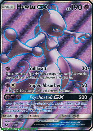 Kosten: Der Schaden dieser Attacke wird durch Effekte auf dem Aktiven Pokémon deines Gegners nicht verändert. (Du kannst pro Spiel nur 1 GX-Attacke einsetzen.)  Schaden: