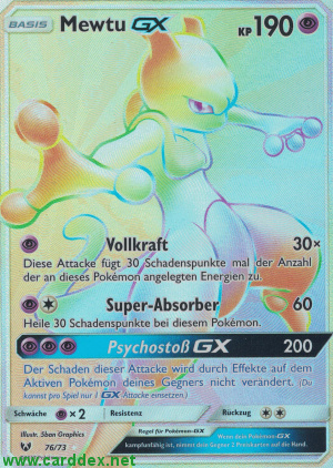 Kosten: Der Schaden dieser Attacke wird durch Effekte auf dem Aktiven Pokémon deines Gegners nicht verändert. (Du kannst pro Spiel nur 1 GX-Attacke einsetzen.)  Schaden: