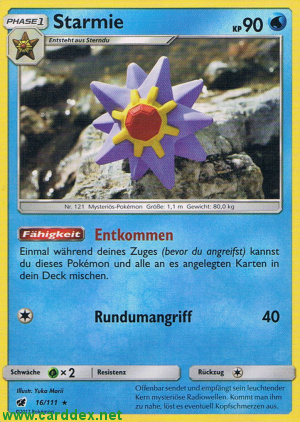 Einmal während deines Zuges (bevor du angreifst) kannst du dieses Pokémon und alle an es angelegten Karten in dein Deck mischen.