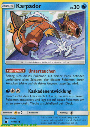 Durchsuche dein Deck nach 1 Karte, die sich aus diesem Pokémon entwickelt, und lege sie auf dieses Pokémon, um es zu entwickeln. Mische anschließend dein Deck.