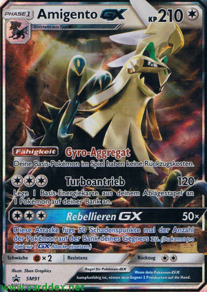 Kosten: Diese Attacke fügt 50 Schadenspunkte mal der Anzahl der Pokémon auf der Bank deines Gegners zu. (Du kannst pro Spiel nur 1 GX-Attacke einsetzen.)  Schaden:
