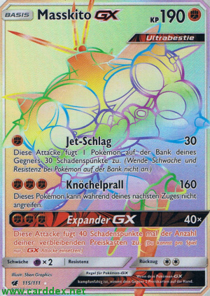 Kosten: Diese Attacke fügt 40 Schadenspunkte mal der Anzahl deiner verbleibenden Preiskarten zu. (Du kannst pro Spiel nur 1 GX-Attacke einsetzen.)  Schaden: