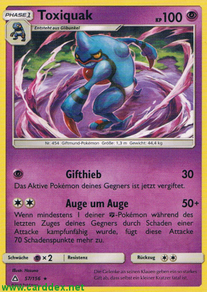 Kosten: Das Aktive Pokémon deines Gegners ist jetzt vergiftet.  Schaden: