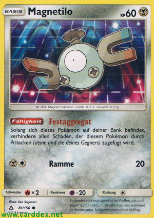 Solang sich dieses Pokémon auf deiner Bank befindet, verhindere allen Schaden, der diesem Pokémon durch Attacken (deine und die deines Gegners) zugefügt wird.