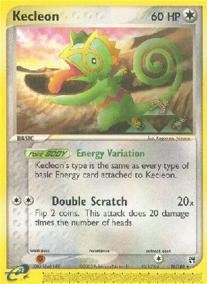 Kecleon hat den gleichen Typ wie jede Basis-Energiekarte, die an Kecleon angelegt ist.