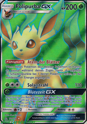 Durchsuche pro Basis-Pokémon auf deiner Bank dein Deck nach 1 Karte, die sich aus jenem Pokémon entwickelt, und lege sie auf jenes Pokémon, um es zu entwickeln. Mische anschließend dein Deck. (Du kannst pro Spiel nur 1 GX-Attacke einsetzen.)