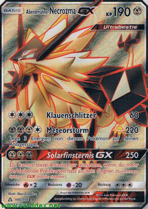 Kosten: Du kannst diese Attacke nur einsetzen, wenn du mehr verbleibende Preiskarten hast, als dein Gegner. (Du kannst pro Spiel nur 1 GX-Attacke einsetzen.)  Schaden: