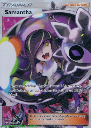 Du kannst in jedem Zug nur 1 Unterstützerkarte spielen. Wenn du diese Karte ausspielst, lege sie neben dein aktives Pokémon. Lege diese Karte am Ende deines Zuges auf deinen Ablagestapel.