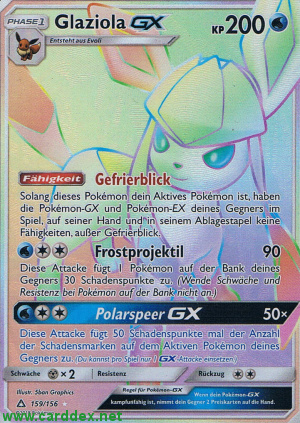 Solang dieses Pokémon dein Aktives Pokémon ist, haben die Pokémon-GX und Pokémon-EX deines Gegners im Spiel, auf seiner Hand und in seinem Ablagestapel keine Fähigkeiten, außer Gefrierblick.