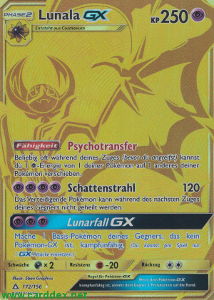 Kosten: Mache 1 Basis-Pokémon deines Gegners, das kein Pokémon-GX ist, kampfunfähig. (Du kannst pro Spiel nur 1 GX-Attacke einsetzen.)   Schaden: