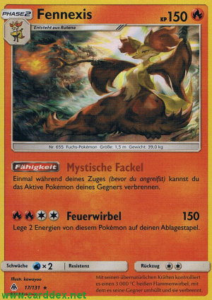 Einmal während deines Zuges (bevor du angreifst) kannst du das Aktive Pokémon deines Gegners verbrennen.