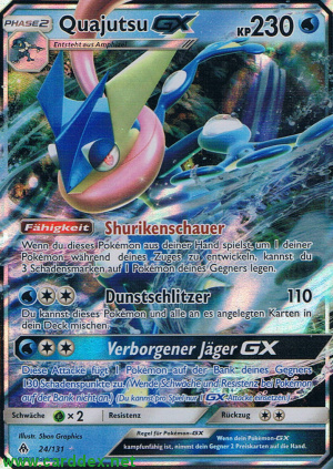 Wenn du dieses Pokémon aus deiner Hand spielst, um 1 deiner Pokémon während deines Zuges zu entwickeln, kannst du 3 Schadensmarken auf 1 Pokémon deines Gegners legen.