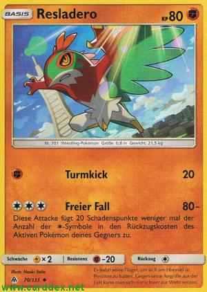 Kosten: Diese Attacke fügt 20 Schadenspunkte weniger mal der Anzahl der -Symbole in den Rückzugskosten des Aktiven Pokémon deines Gegners zu.  Schaden: