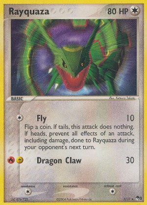 Kosten: Flip a coin. If tails, this attack does nothing. If heads, prevent all effects of an attack including damage, done to Rayquaza during your opponent's next turn.  Schaden: