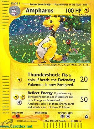 Falls du mindestens ein Pokémon auf deiner Bank hast und mindestens eine Basis-Energiekarte an Ampharos angelegt ist, nimm 1 dieser Energiekarten und lege sie an 1 dieser Pokémon an.