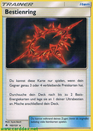 Durchsuche dein Deck nach bis zu 2 Basis-Energiekarten lege sie an 1 deiner Ultrabestien an. Mische anschließend dein Deck.