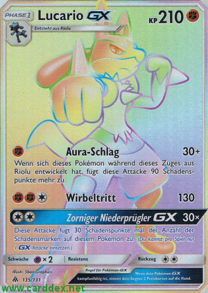Kosten: Wenn sich dieses Pokémon während dieses Zuges aus Riolu entwickelt hat, fügt diese Attacke 90 Schadenspunkte mehr zu.  Schaden: