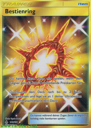 Durchsuche dein Deck nach bis zu 2 Basis-Energiekarten lege sie an 1 deiner Ultrabestien an. Mische anschließend dein Deck.