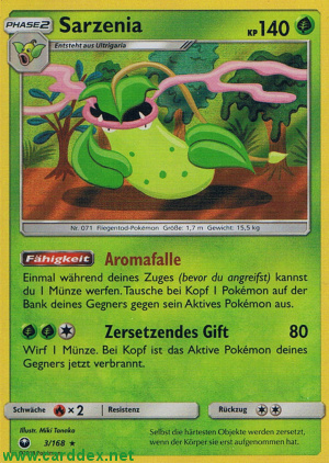 Einmal während deines Zuges (bevor du angreifst) kannst du 1 Münze werfen. Tausche bei Kopf 1 Pokémon auf der Bank deines Gegners gegen sein Aktives Pokémon aus.