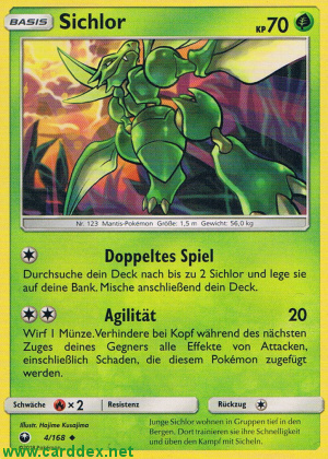 Durchsuche dein Deck nach bis zu 2 Sichlor und lege sie auf deine Bank. Mische anschließend dein Deck.