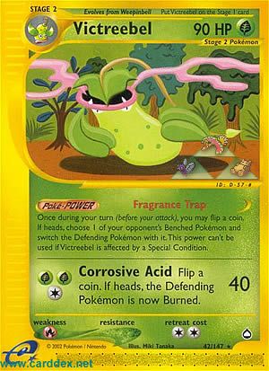 Einmal während deines Zuges (vor deinem Angriff) kannst du eine Münze werfen. Wähle bei "Kopf" 1 der Pokémon auf der Bank deines Gegners und tausche es mit dem Verteidigenden Pokémon. Diese Fähigkeit kann nicht verwendet werden, falls Sarzenia von einem Speziellen Zustand betroffen ist.