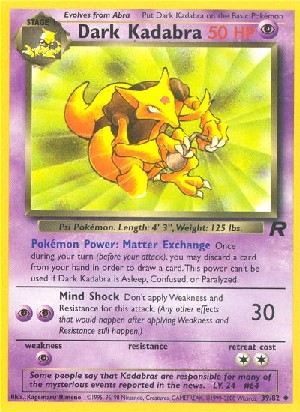Once during your turn (before your attack), you may discard a card from your hand in order to draw a card. This power can't be used if Dark Kadabra is Asleep, Confused, or Paralyzed.