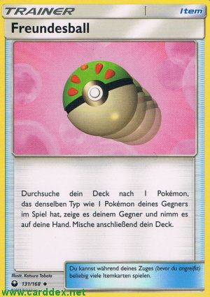 Beschreibung: Durchsuche dein Deck nach 1 Pokémon, das denselben Typ wie 1 Pokémon deines Gegners im Spiel hat, zeige es deinem Gegner und nimm es auf deine Hand. Mische anschließend dein Deck.