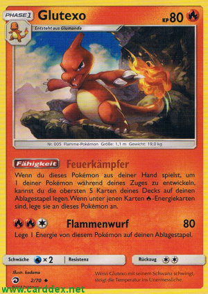 Wenn du dieses Pokémon aus deiner Hand spielst, um 1 deiner Pokémon während deines Zuges zu entwickeln, kannst du die obersten 5 Karten deines Decks auf deinen Ablagestapel legen. Wenn unter jenen Karten -Energiekarten sind, lege sie an dieses Pokémon an.