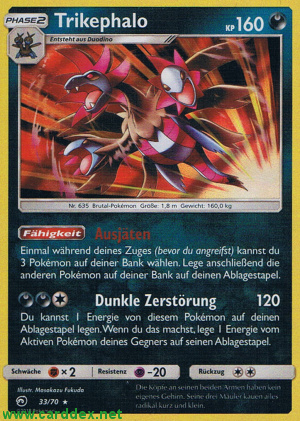 Du kannst 1 Energie von diesem Pokémon auf deinen Ablagestapel legen. Wenn du das machst, lege 1 Energie vom Aktiven Pokémon deines Gegners auf seinen Ablagestapel.
