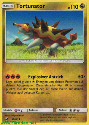 Kosten: Lege beliebig viele -Energien von deinen Pokémon auf deinen Ablagestapel. Diese Attacke fügt 50 Schadenspunkte mal der Anzahl der auf diese Weise auf deinen Ablagestapel gelegten Karten zu.  Schaden: