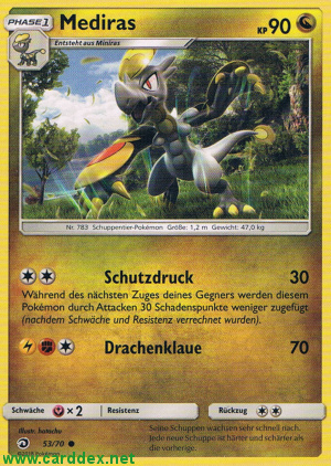 Während des nächsten Zuges deines Gegners werden diesem Pokémon durch Attacken 30 Schadenspunkte weniger zugefügt (nachdem Schwäche und Resistenz verrechnet wurden).