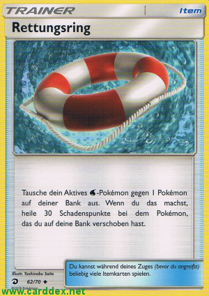Beschreibung: Tausche dein Aktives -Pokémon gegen 1 Pokémon auf deiner Bank aus. Wenn du das machst, heile 30 Schadenspunkte bei dem Pokémon, das du auf deine Bank verschoben hast.