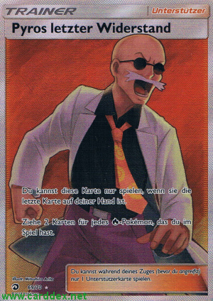 Du kannst in jedem Zug nur 1 Unterstützerkarte spielen. Wenn du diese Karte ausspielst, lege sie neben dein aktives Pokémon. Lege diese Karte am Ende deines Zuges auf deinen Ablagestapel.