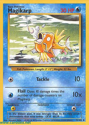 Kosten: Fügt 10 Schadenspunkte mal der Anzahl der auf Karpador abgelegten Schadensmarken zu.  Schaden: