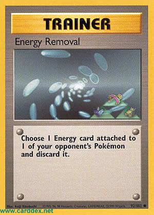 Wähle eine auf einem Pokemon Deines gegners abgelegte Energiekarte und entferne sie.
